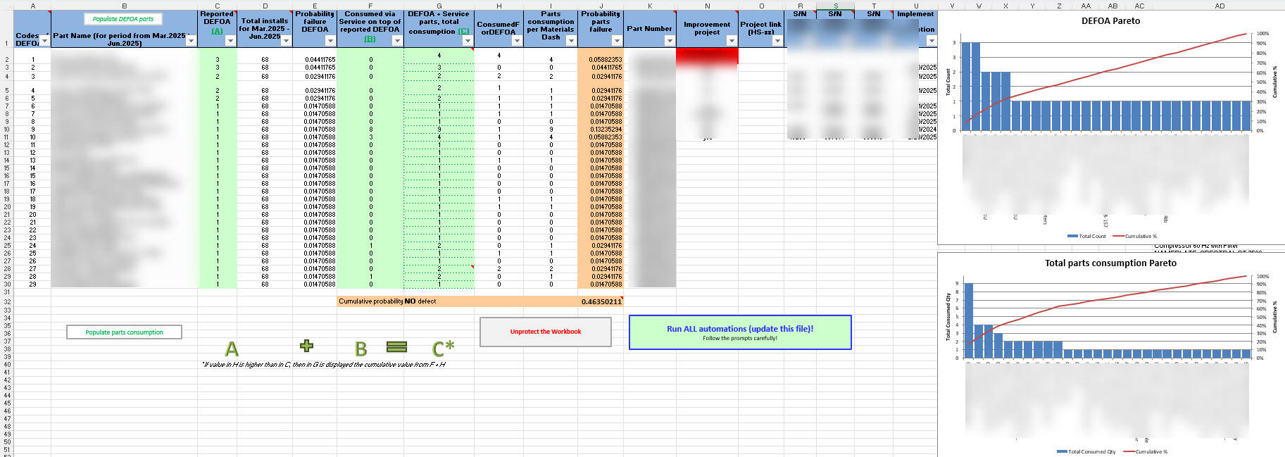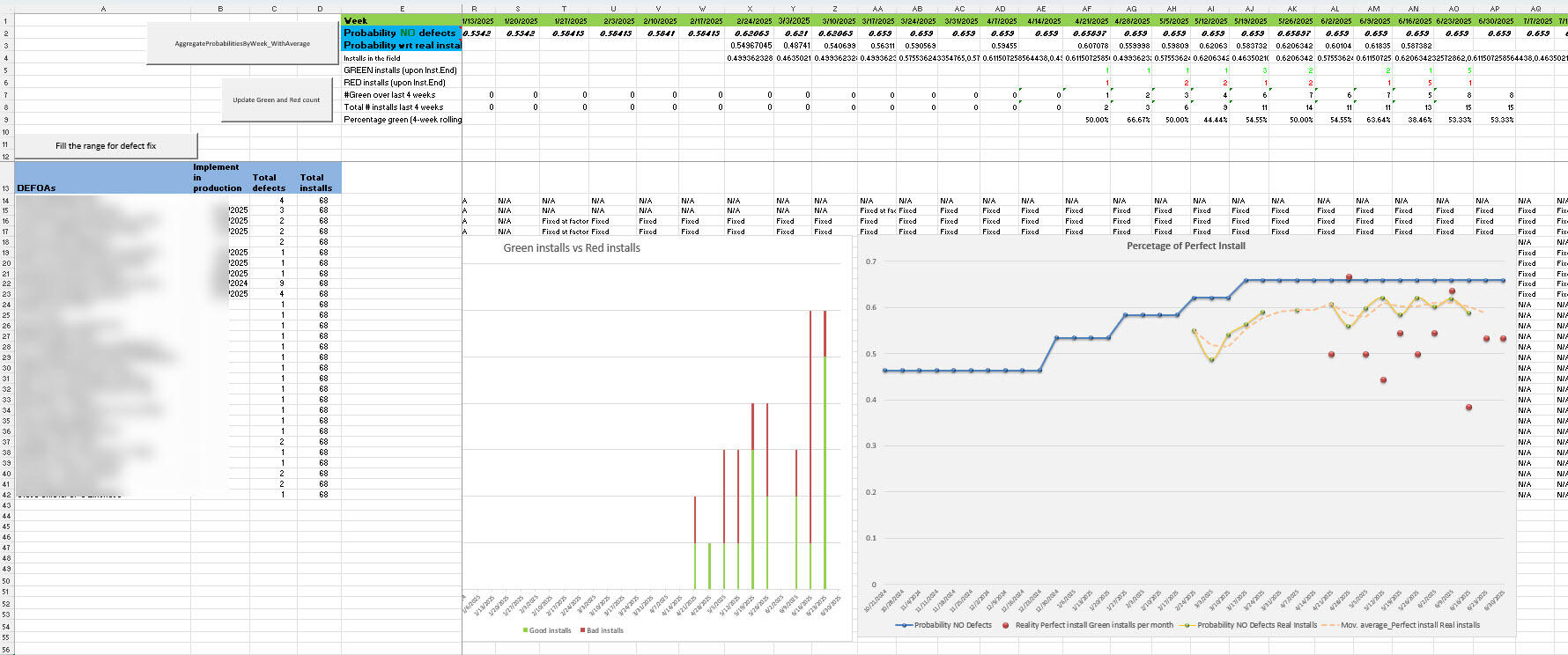 Built scalable dashboards using VBA, pivot logic, and dynamic charting to automate defect tracking and field service reporting across multiple hardware systems.
